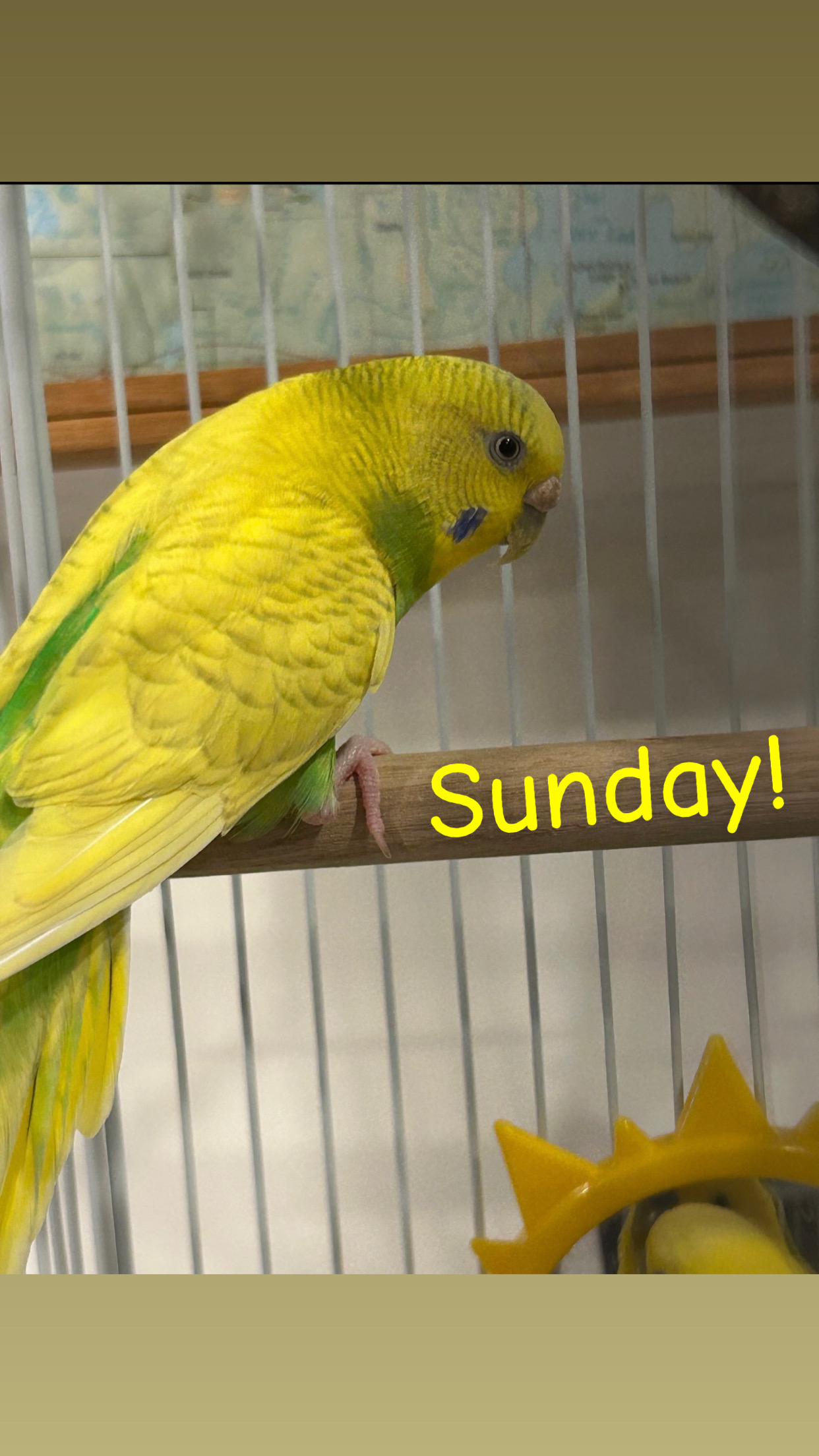 âď¸ Sunday âď¸ is a dazzling little one year old budgie looking for a home! Sheâs a real perch-proâin fact, sheâll make a grand entrance and land on anyone, just like a ray of sunshine on a lazy Sunday morning. Be warned: she likes to add a dash of fun to every visit with a gentle nip, her signature âSunday pinchââitâs her quirky way of asking, âAre you awake yet?â. Sunday is a lady with a history of egg-laying, so keeping her supplied with cuttlebone is important for her health. She is used to a Hagen seed diet boosted with vitamin supplements to keep her chirpy and bright. Sundayâs Highlights â˘Loves to land on people and get closeâexpect surprise visits from this feathery friend! â˘Always delivers a little nip, her own version of a âSunday wake-up call,â guaranteed to keep life interesting. â˘Needs cuttlebone for calcium, especially since sheâs an egg-layer and an expert at keeping routines. â˘Eats Hagen seed and enjoys supplement vitamins, so her nutrition is as well-planned as her landings. Ideal Home â˘Great match for someone who appreciates a budgie with personalityânips and all! â˘Will thrive with attentive calcium care, a good diet, and a home ready for her silly, social ways. Give Sunday a chance to be the highlight of your week, every week. Sheâs ready to fly into her next adventureâand maybe onto your shoulder!