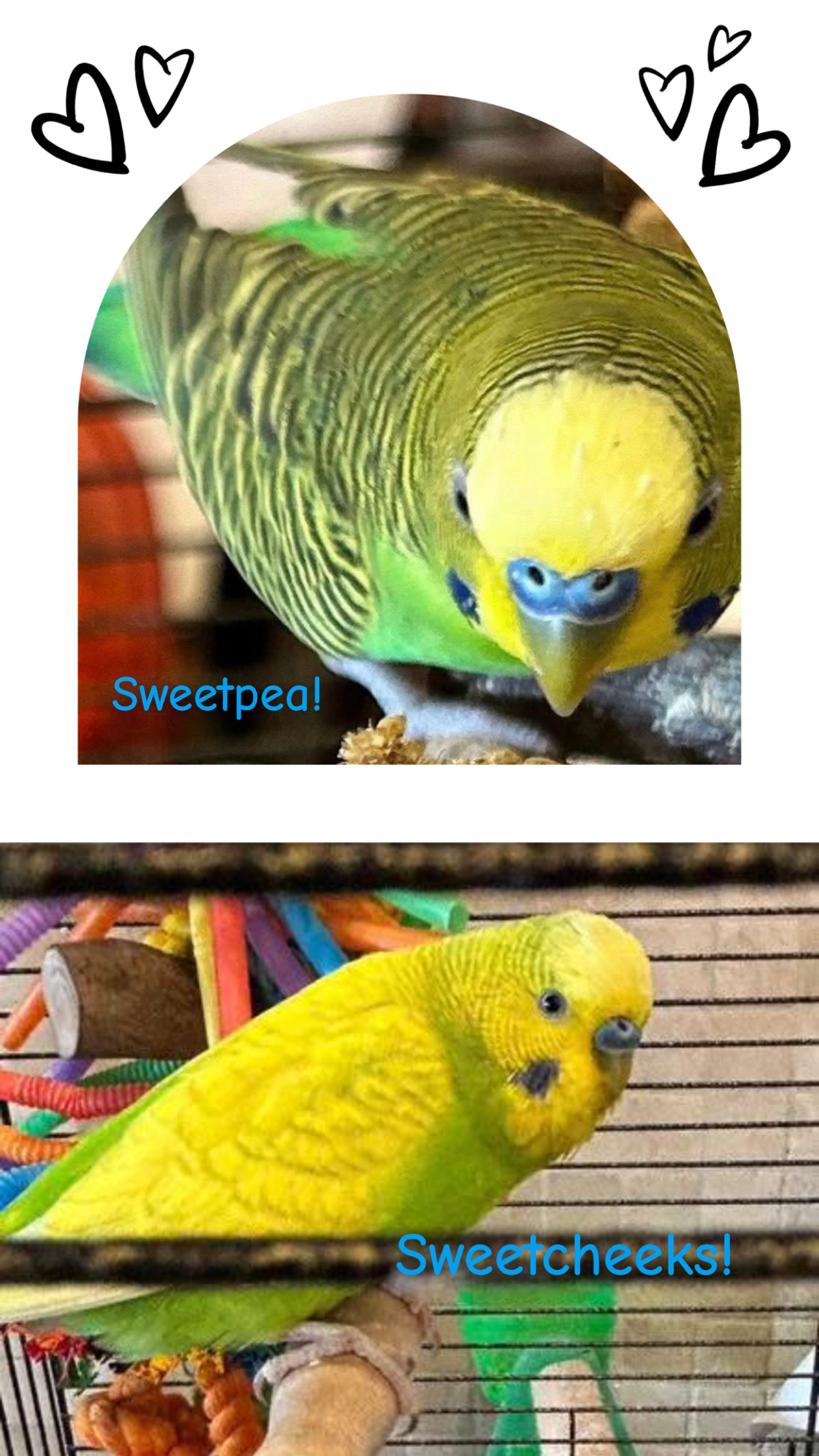 Looking for a sweet deal? Meet Sweetpea đŤ and Sweetcheeks đâ two male budgies as delightful as their names! These cheerful little ones have been patiently waiting at their foster home for almost two months! Sweetpea đŤ is dressed in green and yellow, while Sweetcheeks đ rocks bright yellow with touches of green. Both are thriving on their seed diet with vitamin supplements, and theyâre just as gentle and lovable as youâd expect. These little two year old sweeties are not hand tamed, and they get covered at night. Apply today to meet this darling duoâyour home just might be their happily-ever-after perch.